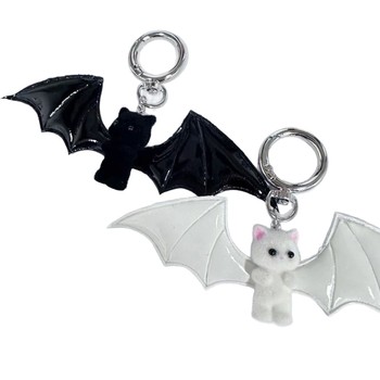 Devil Cat Keychain in Black & White Fashionable Metal Alloy Accessory for Bags & Phones Perfect Halloween Gift